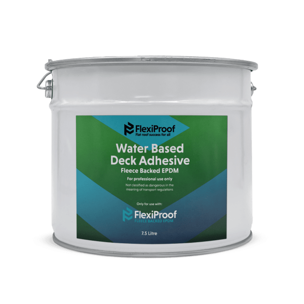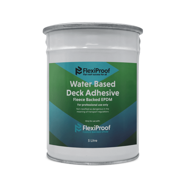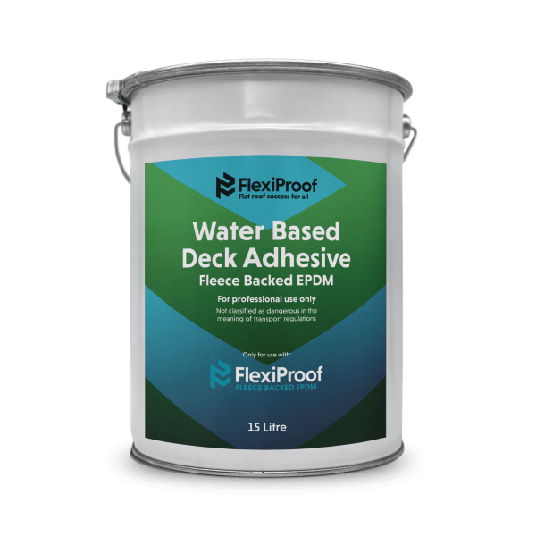 The FlexiProof Fleece Backed Water Based Deck Adhesive is a high strength, low odour adhesive used for bonding a Fleece Backed membrane sheet to a timber deck. Designed to be applied using a roller on flat roof surfaces.